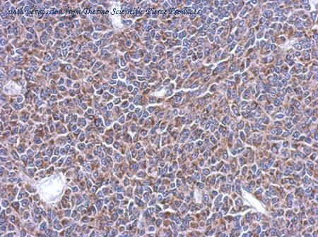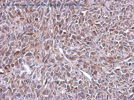 Immunohistochemical analysis of paraffin-embedded RT2 xenograft using MRPL14 (PA5-32095) antibody at 1:500 dilution.