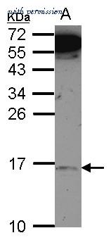 Western Blot analysis of MRPL14 using anti-MRPL14 Polyclonal Antibody (PA5-32095), in Hep G2 Cell Lysate (30 ug of cell lysate) and at a dilution of 1:500.