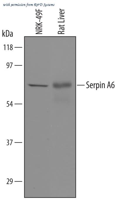 Detection of Rat Serpin A6 antibody by Western Blot.