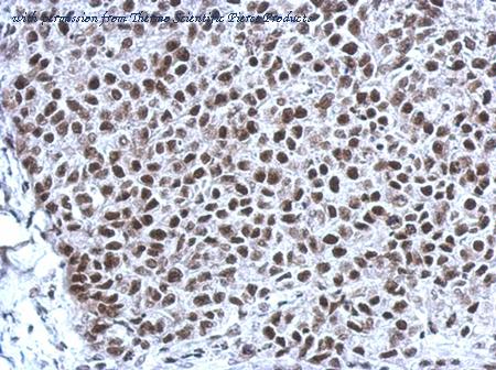 Immunohistochemical analysis of paraffin-embedded Hela xenograft using THAP11 (PA5-31574) antibody at 1:500 dilution.