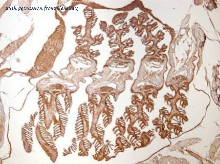 Immunohistochemical analysis of paraffin-embedded zebrafish tissue, using hsp90ab1 (GTX124483) antibody at 1:300 dilution.
