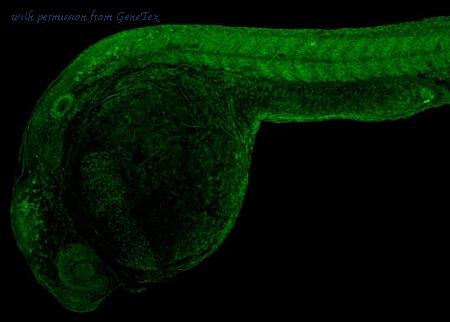 mitfa antibody detects mitfa protein on whole-mount zebrafish embryos by immunohistochemical analysis. Sample: Paraformaldehyde-fixed zebrafish embryos. mitfa antibody (GTX128263) dilution: 1:200.