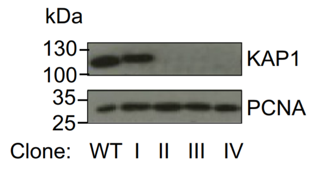 This is a knockout-validated antibody summary, based on the publication "KAP1 regulates endogenous retroviruses in adult human cells and contributes to innate immune control", as cited below [1]. Labome curates formal publications to compile a list of antibodies with unambiguous specificity within Validated Antibody Database (VAD).