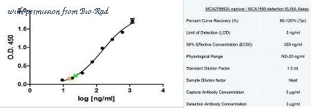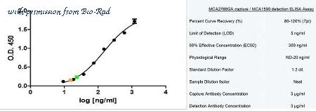 Sandwich ELISA analysis of Human CD40 binding using Mouse anti Human CD40 antibody, clone 3B2 ( MCA2788GA ) as a capture reagent and biotinylated Mouse anti Human CD40 antibody, clone LOB7/6 ( MCA1590B ) as a detection reagent with purified Human CD40 as antigen for the generation of the standard curve. Detection is by HRP conjugated streptavidin. Microtitre plate is read at O.D. 450 nm on the Bio-Rad iMark Microplate Absorbance Reader ( Bio-Rad Catalog 168-1135 ). Undiluted serum and plasma samples are shown green and orange respectively.
