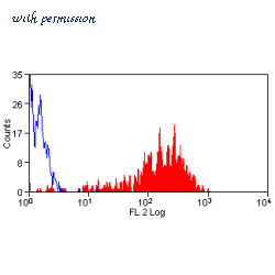 Staining of thrombin activated platelets with Mouse anti Human CD62P:RPE ( MCA2420PET )