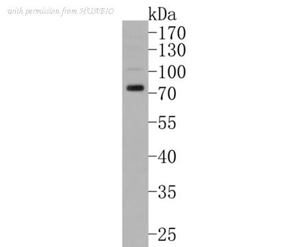 Western blot analysis of VGluT1 on K562 cell lysates. Proteins were transferred to a PVDF membrane and blocked with 5% NFDM/TBST for 1 hour at room temperature. The primary antibody (HA500488, 1/500) was used in 5% NFDM/TBST at room temperature for 2 hours. Goat Anti-Rabbit IgG - HRP Secondary Antibody (HA1001) at 1:200,000 dilution was used for 1 hour at room temperature.
