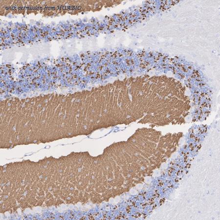 Application: IHC-Fr Species: Mouse Site: Cerebellum Sample: Frozen section Antibody concentration: 1:500 Antigen retrieval: Not required