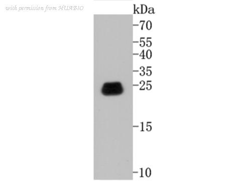Western blot analysis of Caveolin-1 on SiHa cell lysates. Proteins were transferred to a PVDF membrane and blocked with 5% BSA in PBS for 1 hour at room temperature. The primary antibody (EM1902-01, 1/500) was used in 5% BSA at room temperature for 2 hours. Goat Anti-Mouse IgG - HRP Secondary Antibody (HA1006) at 1:5,000 dilution was used for 1 hour at room temperature.