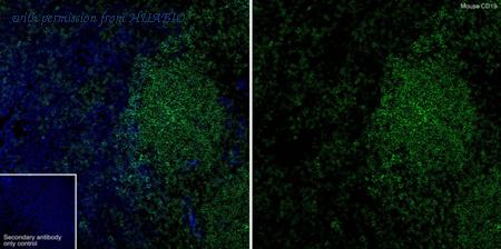 Application: IHC-Fr Species: Mouse Site: spleen Sample: Frozen section Antibody concentration: 1/500 Antigen retrieval: Recommend. The section was pre-treated using heat mediated antigen retrieval with sodium citrate buffer (pH 6.0) for about 2 minutes in microwave oven.