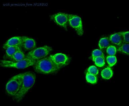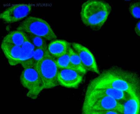 Immunocytochemical staining of PANC-1 cells using anti-Cytokeratin 8 Mouse mAb.