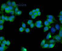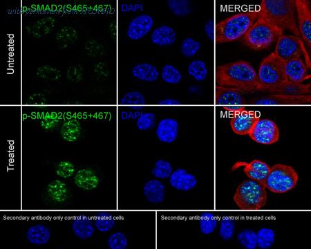 Immunocytochemical staining of SK-BR-3 cells using anti-Smad2 rabbit polyclonal antibody.