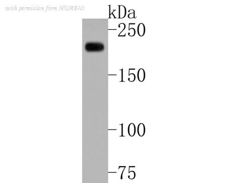 Western blot analysis of Alpha-2-macroglobulin on LOVO cell lysate. Proteins were transferred to a PVDF membrane and blocked with 5% BSA in PBS for 1 hour at room temperature. The primary antibody (M1510-22, 1/500) was used in 5% BSA at room temperature for 2 hours. Goat Anti-Mouse IgG - HRP Secondary Antibody (HA1006) at 1:5,000 dilution was used for 1 hour at room temperature.