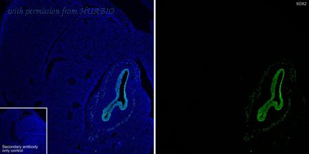 Application: IHC-Fr Species: Mouse Site: E14.5 embryonic brain Sample: Frozen section Antibody concentration: 1:1,000 Antigen retrieval: Not required