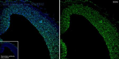 Application: IHC-Fr Species: Mouse Site: E14.5 embryonic brain Sample: Frozen section Antibody concentration: 1/500 Antigen retrieval: Not required