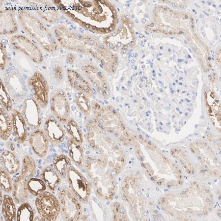 Application: IHC-Fr Species: Mouse Site: kidney Sample: Frozen section Antibody concentration: 1/500 Antigen retrieval: Not required