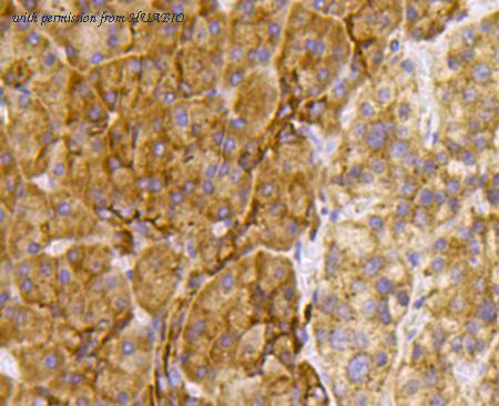 Immunohistochemical analysis of paraffin- embedded human pancreas tissue using anti-Tuberin rabbit polyclonal antibody.