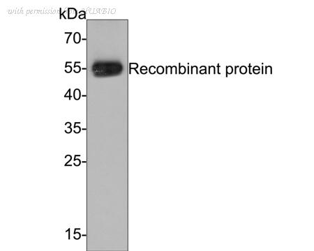 Western blot analysis of FAM38A / PIEZO1 on recombinant protein with Mouse anti-FAM38A / PIEZO1 antibody (M1005-2) at 1/500 dilution. Lysates/proteins at 50 ng/Lane. Exposure time: 1 minute; 10% SDS-PAGE gel. Proteins were transferred to a PVDF membrane and blocked with 5% NFDM/TBST for 1 hour at room temperature. The primary antibody (M1005-2) at 1/500 dilution was used in 5% NFDM/TBST at room temperature for 2 hours. Goat Anti-Mouse IgG - HRP Secondary Antibody (HA1006) at 1:100,000 dilution was used for 1 hour at room temperature.