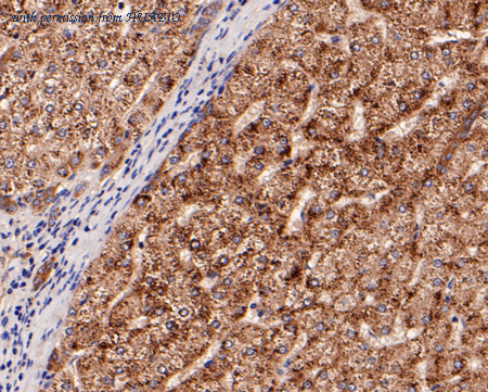 Immunohistochemical analysis of paraffin-embedded human prostate cancer tissue with Rabbit anti-AMACR antibody (HA751474) at 1/1,000 dilution. The section was pre-treated using heat mediated antigen retrieval with Tris-EDTA buffer (pH 9.0) for 20 minutes. The tissues were blocked in 1% BSA for 20 minutes at room temperature, washed with ddH2O and PBS, and then probed with the primary antibody (HA751474) at 1/1,000 dilution for 1 hour at room temperature. The detection was performed using an HRP conjugated compact polymer system. DAB was used as the chromogen. Tissues were counterstained with hematoxylin and mounted with DPX.
