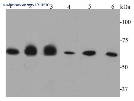 Western blot analysis on mouse liver lysates using anti-catalse mouse mAb.