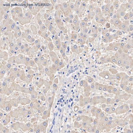 Immunohistochemical analysis of paraffin-embedded mouse liver tissue with Rabbit anti-Catalase antibody (HA750377) at 1/1,000 dilution. The section was pre-treated using heat mediated antigen retrieval with Tris-EDTA buffer (pH 9.0) for 20 minutes. The tissues were blocked in 1% BSA for 20 minutes at room temperature, washed with ddH2O and PBS, and then probed with the primary antibody (HA750377) at 1/1,000 dilution for 1 hour at room temperature. The detection was performed using an HRP conjugated compact polymer system. DAB was used as the chromogen. Tissues were counterstained with hematoxylin and mounted with DPX.