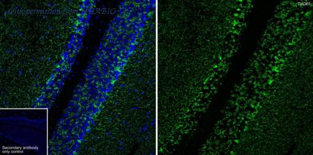 Application: IHC-Fr Species: Mouse Site: Cerebellum Sample: Frozen section Antibody concentration: 1:500 Antigen retrieval: Not required
