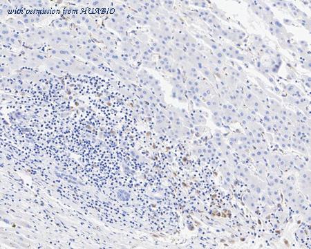 Immunohistochemical analysis of paraffin-embedded human liver cancer tissue with Rabbit anti-GALC antibody (HA750941) at 1/200 dilution. The section was pre-treated using heat mediated antigen retrieval with Tris-EDTA buffer (pH 9.0) for 20 minutes. The tissues were blocked in 1% BSA for 20 minutes at room temperature, washed with ddH2O and PBS, and then probed with the primary antibody (HA750941) at 1/200 dilution for 1 hour at room temperature. The detection was performed using an HRP conjugated compact polymer system. DAB was used as the chromogen. Tissues were counterstained with hematoxylin and mounted with DPX.