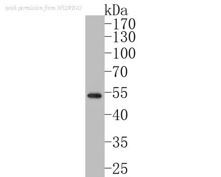 Western blot analysis of GATA3 on SH-SY5Y cell lysates. Proteins were transferred to a PVDF membrane and blocked with 5% BSA in PBS for 1 hour at room temperature. The primary antibody (ER1902-69, 1/500) was used in 5% BSA at room temperature for 2 hours. Goat Anti-Rabbit IgG - HRP Secondary Antibody (HA1001) at 1:5,000 dilution was used for 1 hour at room temperature.