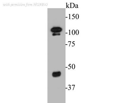 Western blot analysis of FoxP1 on mouse testis tissue lysates. Proteins were transferred to a PVDF membrane and blocked with 5% BSA in PBS for 1 hour at room temperature. The primary antibody (ER1901-25, 1/500) was used in 5% BSA at room temperature for 2 hours. Goat Anti-Rabbit IgG - HRP Secondary Antibody (HA1001) at 1:5,000 dilution was used for 1 hour at room temperature.