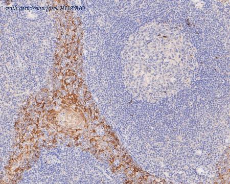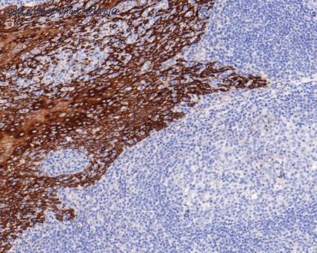Immunohistochemical analysis of paraffin-embedded human tonsil tissue using anti-Cytokeratin 5 antibody. Counter stained with hematoxylin.