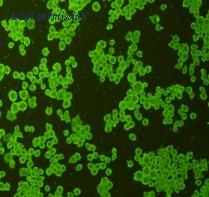 ICC staining cMet in Hela cells (green). Cells were fixed in paraformaldehyde, permeabilised with 0.25% Triton X100/PBS.