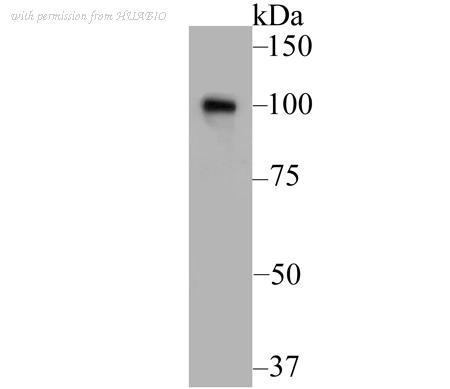 Western blot analysis of MSH2 on K562 cell lysate. Proteins were transferred to a PVDF membrane and blocked with 5% BSA in PBS for 1 hour at room temperature. The primary antibody was used at a 1:500 dilution in 5% BSA at room temperature for 2 hours. Goat Anti-Rabbit IgG - HRP Secondary Antibody (HA1001) at 1:5,000 dilution was used for 1 hour at room temperature.