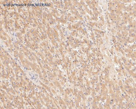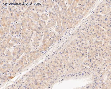 Immunohistochemical analysis of paraffin-embedded human liver tissue using anti-TREM2 antibody. The section was pre-treated using heat mediated antigen retrieval with Tris-EDTA buffer (pH 8.0-8.4) for 20 minutes.The tissues were blocked in 5% BSA for 30 minutes at room temperature, washed with ddH2O and PBS, and then probed with the primary antibody (ER2001-05, 1/200) for 30 minutes at room temperature. The detection was performed using an HRP conjugated compact polymer system. DAB was used as the chromogen. Tissues were counterstained with hematoxylin and mounted with DPX.