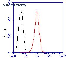 Flow cytometric analysis of TREM2 was done on THP-1 cells. The cells were fixed, permeabilized and stained with the primary antibody (ER2001-59, 1/50) (red). After incubation of the primary antibody at room temperature for an hour, the cells were stained with a Alexa Fluor 488-conjugated Goat anti-Rabbit IgG Secondary antibody at 1/1000 dilution for 30 minutes.Unlabelled sample was used as a control (cells without incubation with primary antibody; black).