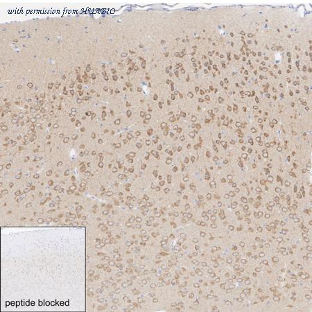 Application: IHC-Fr Species: Rat Site: Cerebral cortex Sample: Frozen section Antibody concentration: 1/500 Antigen retrieval: Not required