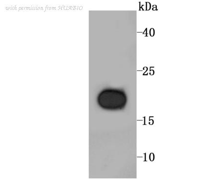 Western blot analysis of RBP4 on HepG2 cell lysates with Rabbit anti-RBP4 antibody (ET1704-86) at 1/5,000 dilution. Lysates/proteins at 20 µg/Lane. Predicted band size: 23 kDa Observed band size: 21 kDa Exposure time: 10 seconds; ECL: K1801; 4-20% SDS-PAGE gel. Proteins were transferred to a PVDF membrane and blocked with 5% NFDM/TBST for 1 hour at room temperature. The primary antibody (ET1704-86) at 1/5,000 dilution was used in primary antibody dilution (K1803) at 4℃ overnight. Goat Anti-Rabbit IgG - HRP Secondary Antibody (HA1001) at 1/50,000 dilution was used for 1 hour at room temperature.