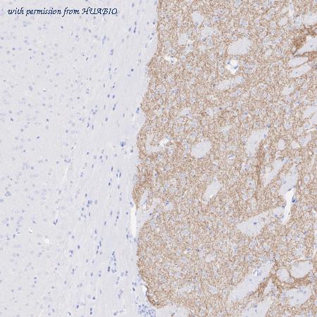 Application: IHC-Fr Species: Mouse Site: Striatum Sample: Frozen section Antibody concentration: 1:500 Antigen retrieval: The section was pre-treated using 1% SDS buffer (in PBS, pH 7.4) for 5 minutes at room temperature.