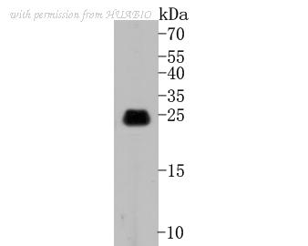 Western blot analysis of Caveolin-1 on SiHa cell lysates. Proteins were transferred to a PVDF membrane and blocked with 5% BSA in PBS for 1 hour at room temperature. The primary antibody (EM1901-87, 1/500) was used in 5% BSA at room temperature for 2 hours. Goat Anti-Mouse IgG - HRP Secondary Antibody (HA1006) at 1:5,000 dilution was used for 1 hour at room temperature.
