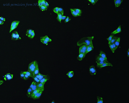 Immunofluorescent staining of Hela cells using anti-Neuropilin 1 Mouse mAb (Cat. # M0910-5).