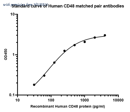 Flow cytometric analysis of THP-1 (left, negative) and Daudi (right, positive) cells labeling CD48.