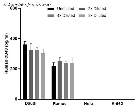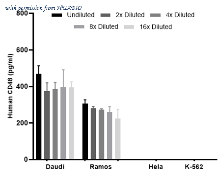 Flow cytometric analysis of HeLa (left, negative) and Daudi (right, positive) cells labeling CD48.