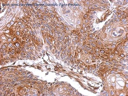 Immunohistochemical analysis of paraffin-embedded Cal27 xenograft using ELA3A (PA5-28155) antibody at 1:500 dilution.