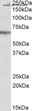 Western Blot staining of K562 cell lysate using PA5-19316 at a concentration of 0.3 ug/ ml, the primary antibody incubation was 1 hour and the detection method was chemiluminescence.