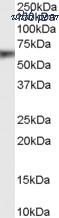 Western Blot staining of Human Lung lysate using PA5-18586 at a concentration of 1.0 ug/ml, the primary antibody incubation was 1 hour and the detection method was chemiluminescence.