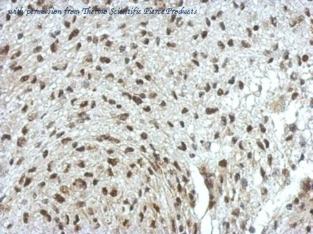 Immunohistochemical analysis of paraffin-embedded U373 xenograft using ERF (PA5-30237) antibody at 1:500 dilution.