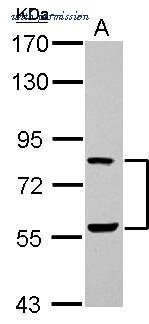 Western Blot analysis of ERF using anti-ERF Polyclonal Antibody (PA5-30237), in A431 Cell Lysate (30 ug of cell lysate) and at a dilution of 1:1000.
