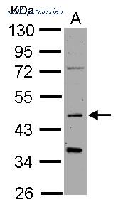 Western Blot analysis of synaptotagmin 1 using anti-synaptotagmin 1 Polyclonal Antibody (PA5-29922), in 293T Cell (30 ug of cell lysate) and at a dilution of 1:1000.