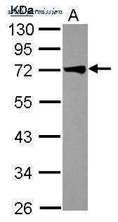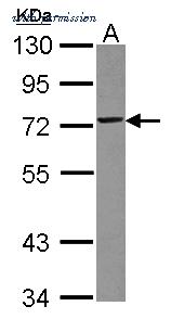 Western Blot analysis of TRIM29 using anti-TRIM29 Polyclonal Antibody (PA5-30488), in A431 Cell Lysate (30 ug of cell lysate) and at a dilution of 1:2000.