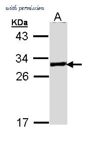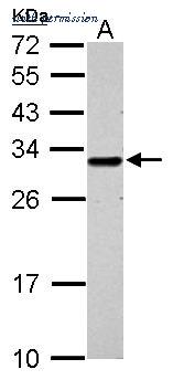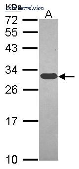 Western Blot analysis of GCLM using anti-GCLM Polyclonal Antibody (PA5-29908), in A431 Cell Lysate (30 ug of cell lysate) and at a dilution of 1:1000.