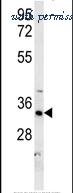 Western blot analysis of DHB13 in mouse kidney tissue lysates using 15ug per lane of antibody.