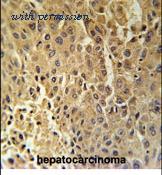 Immunohistochemical analysis in formalin fixed and paraffin embedded human hepatocarcinoma followed by peroxidase conjugation of the secondary antibody and DAB staining.